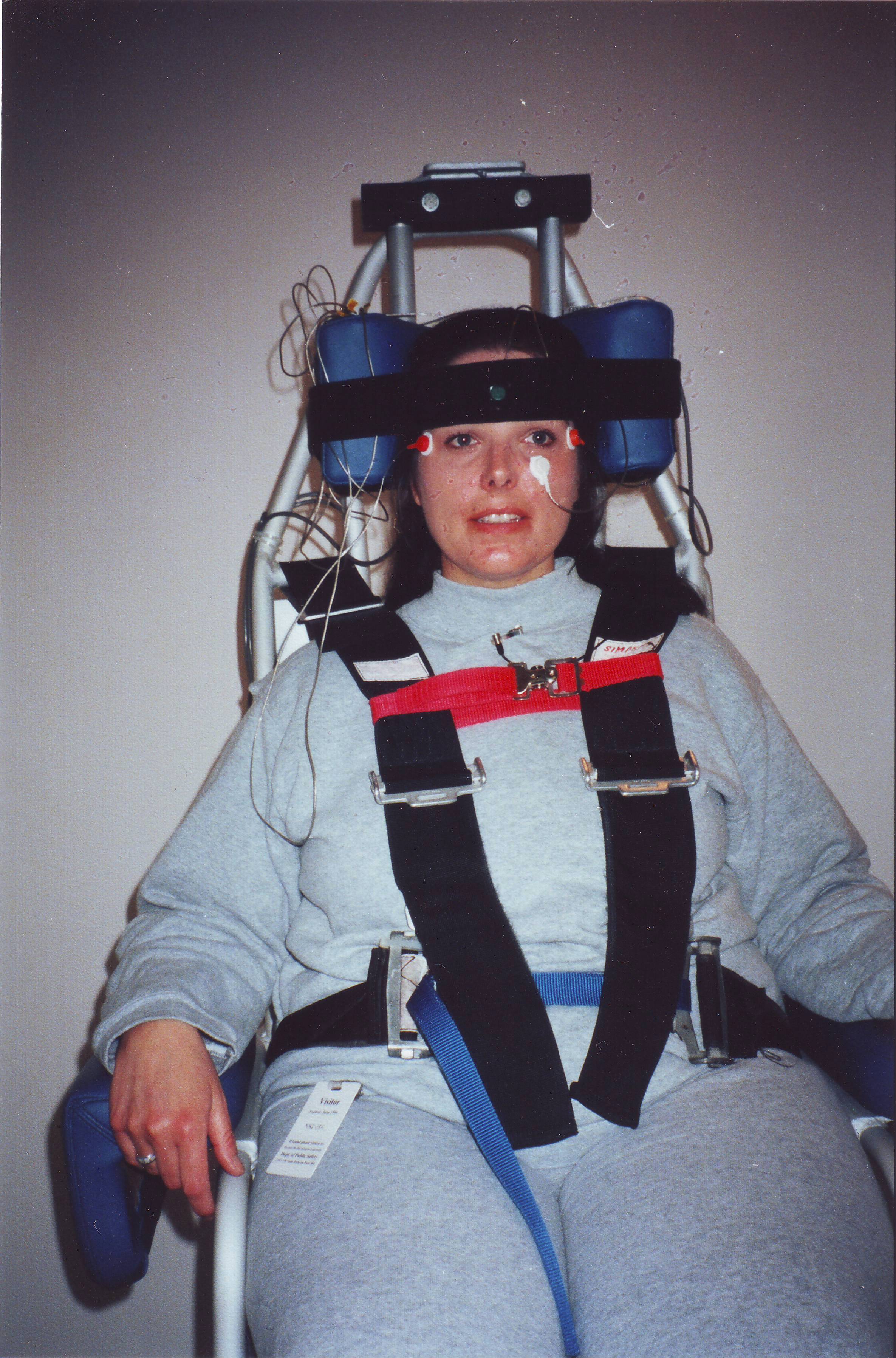 My experience in Portland was really my first experience with the research world, and, being a test subject.  There was a lot of strange and frightening looking equipment that I was either strapped or bound into or held up with a harness.  I underwent tests unlike anything I had ever experienced to assess the damage done to my vestibular system, the visual effects of my oscillopsia, and ocular and postural control.  Here are some photos from that experience: